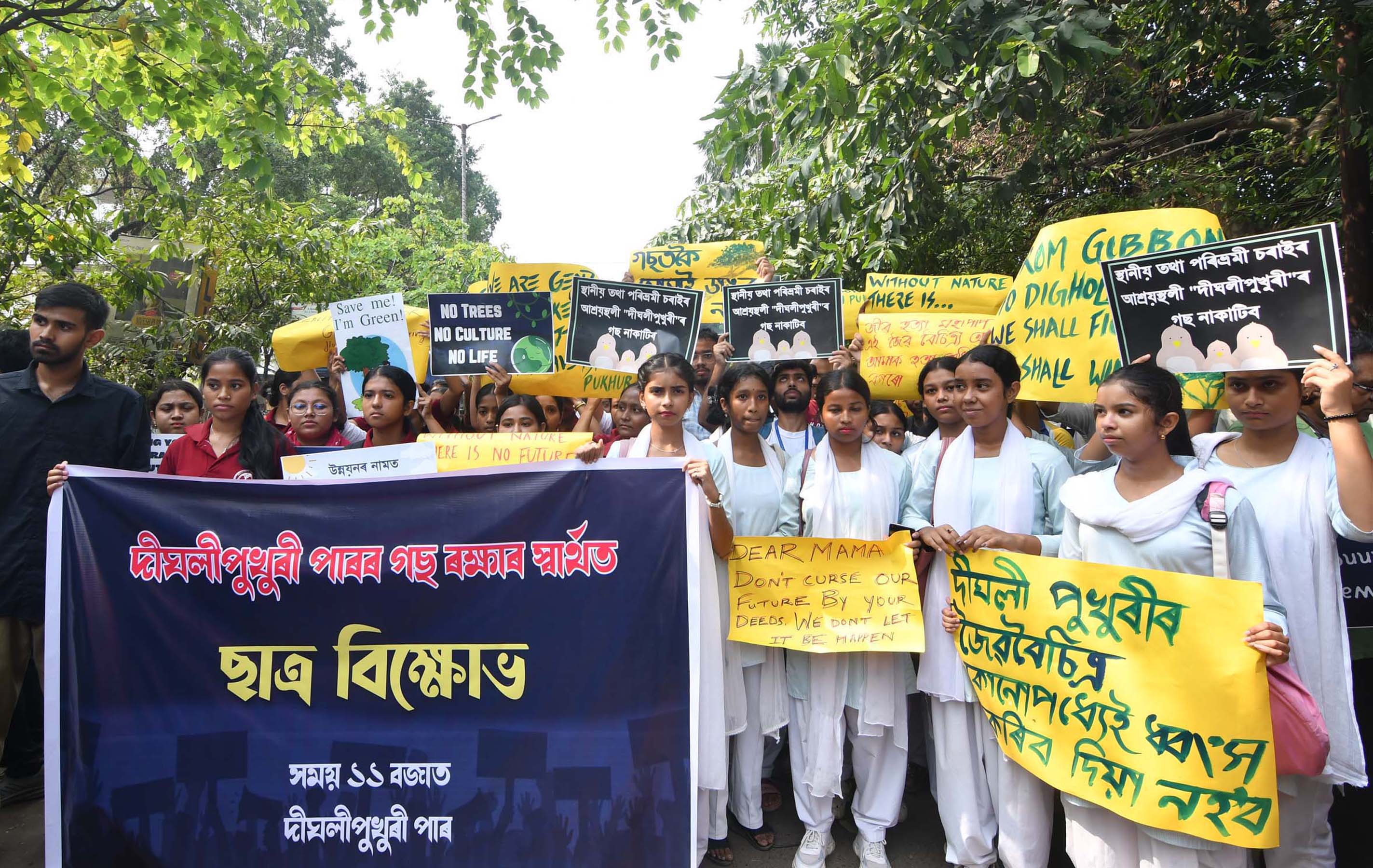“দীঘলীপুখুৰীপাৰৰ অস্তিত্ব সংৰক্ষণ কৰিবলৈ আমি প্ৰতিবাদ কৰি আছো,” আন্দোলনকাৰীয়ে কয়। মুখ্যমন্ত্ৰীয়ে খোদ দীঘলীপুখুৰীপাৰ ভ্ৰমণ কৰি ঘোষণা কৰে, “দীঘলীপুখুৰীপাৰৰ গছ কাটিব নোৱাৰি আৰু সেঁতু দীঘলীপুখুৰীপাৰত নিদিয়ে।”
